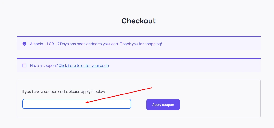 At eSimy we offer promotional coupon codes and offers sometimes through different channels over marketing with email, websites, social media sites etc so to use a promo code its actually easy during the checkout process you write the code in and click apply and price drops during payment of your order.